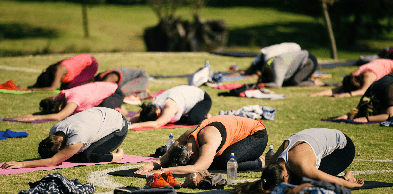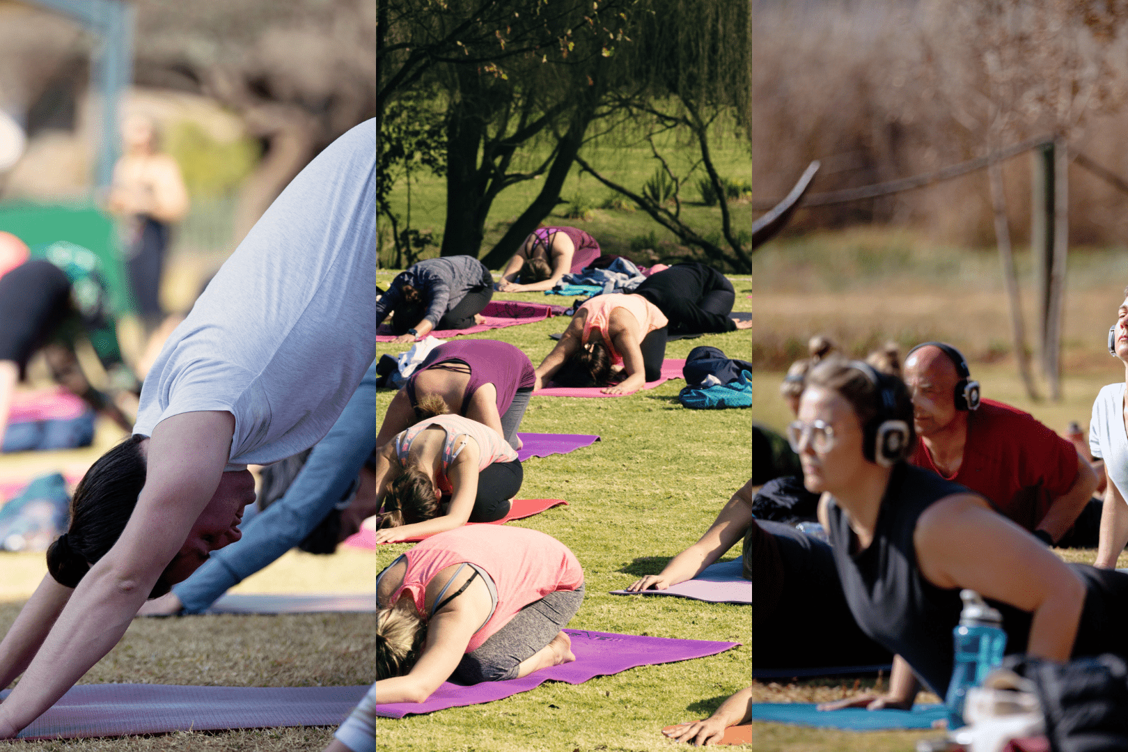 Settle on your mat, put on your headset, breathe in the early morning calm.